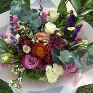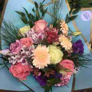 Bouquet de tamaño mediado, conformado por el mix de flores del día, diseñado para entregar un bouquet colorido y armonioso.